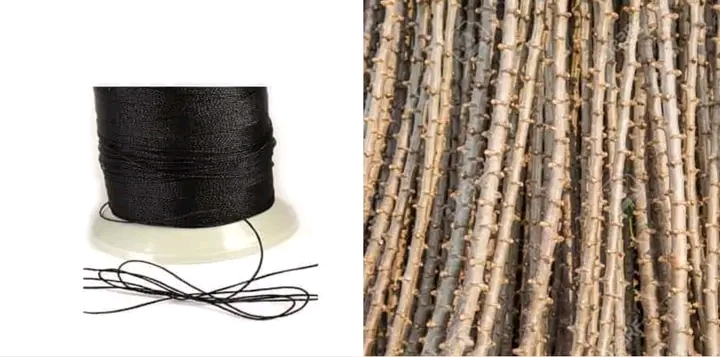 Prenez chaque tige et attachez le fil noir au milieu de chacun. Allez posez les 4 tiges un à un dans les 4 coins du magasin , de la maison ou de l’atelier ou du champ 😌✊