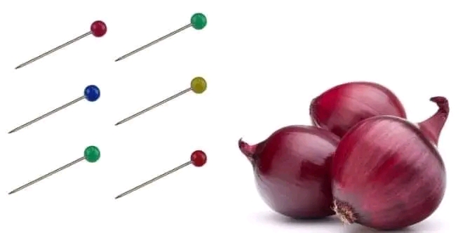 2- Commencer Ă enfoncer une Ă une les Ă©pingles dans l’oignon tout en prononçant Ă chaque fois ces paroles: